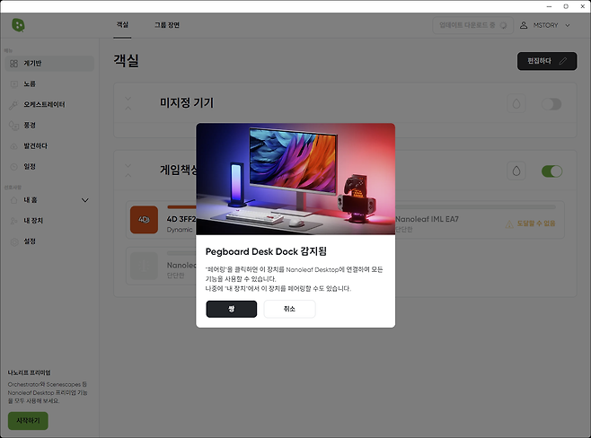 페그보드 데스크 독의 진가는 나노리프 제품들과 전용 소프트웨어인 나노리프 데스크톱 앱과 연동했을 때 비로소 발휘됩니다. 단, 기존의 나노리프 모바일 앱과는 호환되지 않고 데스크톱 전용 앱을 통해서만 제어할 수 있습니다.