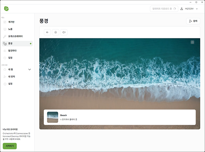 씬스케이프는 나노리프 데스크톱 앱에서 제공하는 유료기능 중 하나로, 시각적인 조명 효과와 청각적인 앰비언트 사운드를 결합하여 마치 실제 환경에 있는 듯한 느낌을 줍니다.