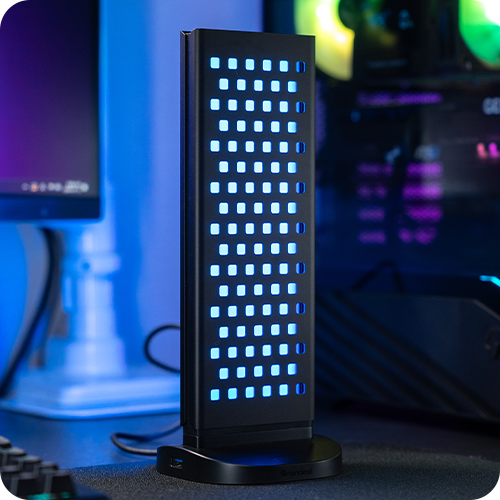 제품의 사양을 살펴보면, 각 독에는 총 32개의 풀컬러 LED가 탑재되어 있어 1,600만 가지 이상의 색상 조합을 구현할 수 있습니다. 크기는 데스크에 올리기 적당한 컴팩트한 사이즈로 설계되었으며, 180도 회전이 가능한 듀얼 페이스 디자인이 가장 큰 특징입니다.