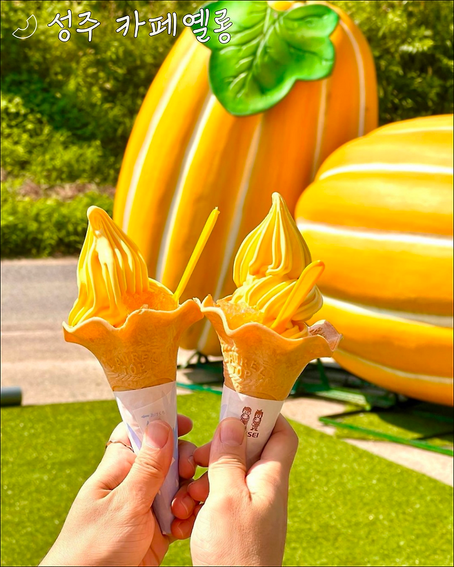 카페옐롱은 성주의 특산물, 참외를 잔뜩 느낄 수 있는 카페🍦예요. 다른 카페에도 참외디저트는 많지만, 이곳에서만큼은 참외의 1부터 10까지 모두 즐길 수 있답니다.