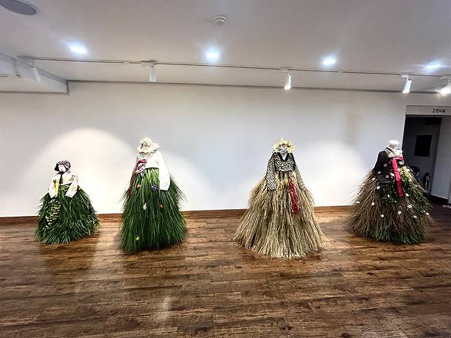 추석을 하루 앞둔 16일 기자가 찾은 서산시민회관 제 1전시관에서는 갓과 볏짚 등을 이용한 설치미술 등 이지영 작가의 한복 작품세계를 엿볼 수 있으며, 2전시관에는 치마와 두루마기 등 김하란 작가의 한복과 디지털아트 조화를 감상할 수 있다.