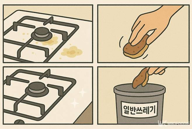 가스레인지는 요리할 때 기름을 조금만 써도 쉽게 자국이 남는다. 특히 튀김이나 볶음 요리를 하면 기름이 넓게 튀고, 자국도 더 많이 남는다. 끈적한 기름때는 세제를 써도 잘 닦이지 않고, 계속해서 문질러야 겨우 지워진다.