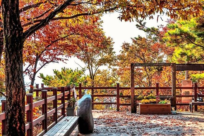 정상에 다다르면 용인의 풍경을 한눈에 내려다볼 수 있는 전망대가 있어 가을철 인기 있는 힐링 장소로 손꼽힌다.