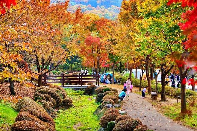 경기도 용인시 처인구 모현읍 초부로 220에 위치한 용인자연휴양림은 정광산 자락에 자리 잡아 가을 피크닉을 즐기기 좋은 장소로 인기를 끌고 있다.