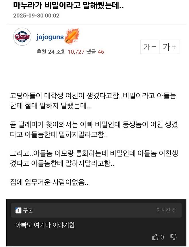 마누라가 말해준 아들의 비밀