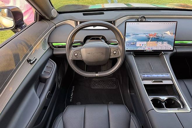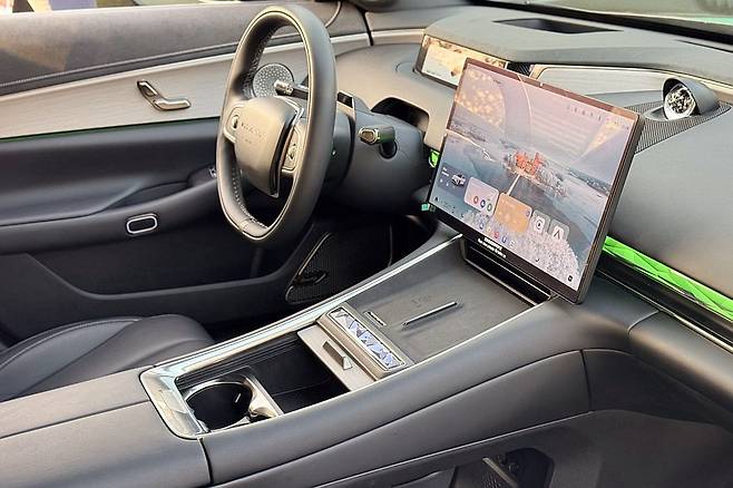 실내는 물리적 버튼을 최소화한 미니멀 디자인으로 구성되었다. 둥근 형태의 스티어링 휠과 작은 8.2인치 계기판, 그리고 중앙에 위치한 12.6인치 대형 수직 터치스크린이 주요 인터페이스를 담당한다. 헤드램프 조작과 미러 조절까지 터치스크린을 통해 이루어지는 점은 사용자 편의성 측면에서 논란의 여지가 있다.