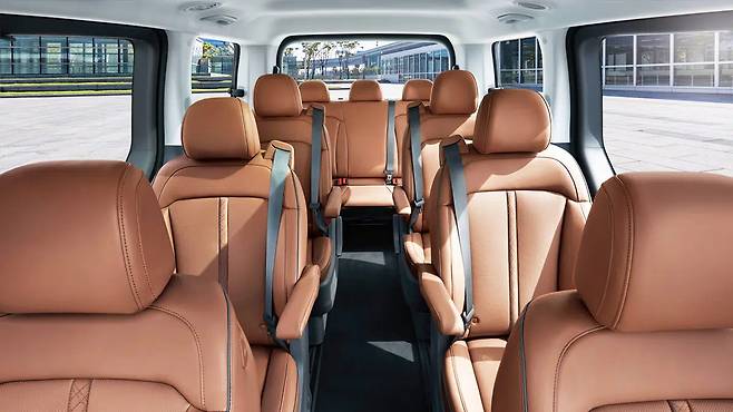 스타리아는 전장이 5,255mm, 전고가 2,000mm에 달하는 덩치로, 11인승 구성이 가능하다.