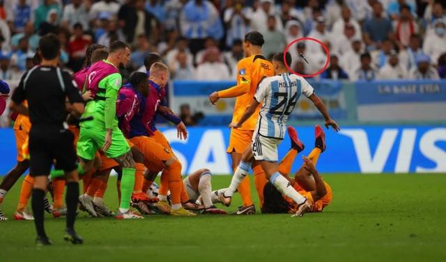 이미 승부가 끝났다. 이제 다른 경기를 앞두고 있는 아르헨티나 축구 국가대표팀이지만 감정이 격앙됐던 네덜란드전의 여파가 여전히 이어지는 듯하다. 경기 중 큰 논란이 야기됐던 선수간 충돌 상황에서 네덜란드 벤치에서 집어던진 이물질이 뒤늦게 공개됐다.