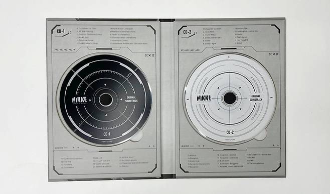 이번에 발매된 앨범은 ‘니케’의 음악이 포함된 CD 두 장과 다양한 굿즈가 포함되어 있습니다. 어떤 음악과 굿즈를 만날 수 있는지 OST 앨범을 열어볼까요?