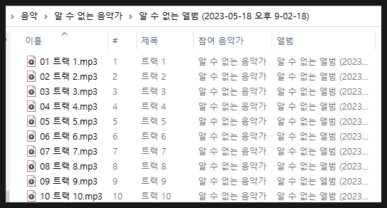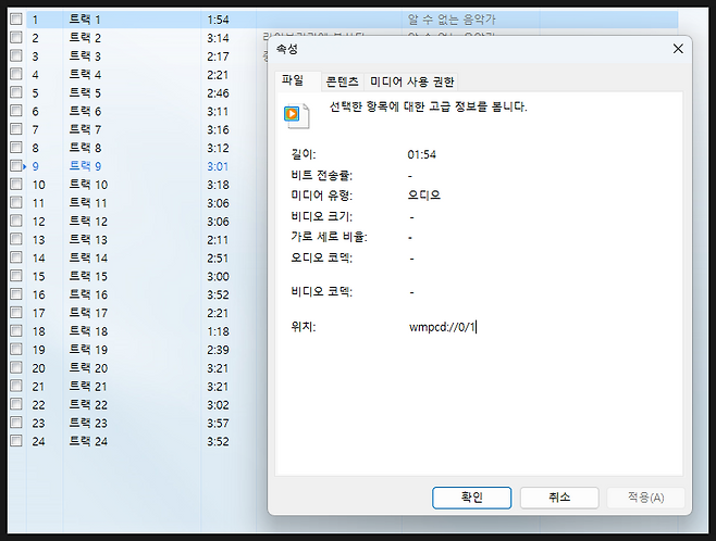 음악의 제목부터 참여 음악가, 앨범명까지 미디어 정보가 없었거든요.