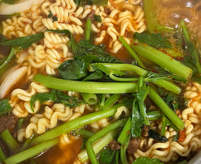채소를 넣으면 라면이 달라 보인다