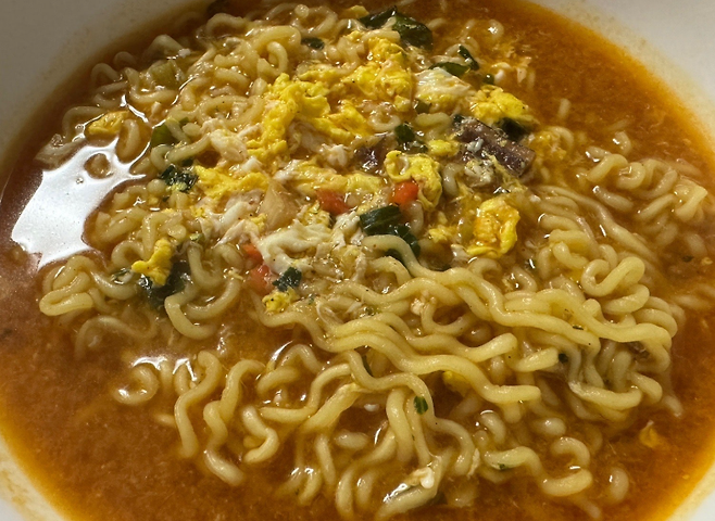 가장 먼저 바꿔야 할 것은 스프 양이다. 라면 한 봉지에 들어 있는 스프를 모두 넣을 필요는 없다. 절반만 사용해도 맛은 충분하다. 나트륨 섭취량은 눈에 띄게 줄어든다. 실제로 스프를 절반만 썼을 때 식후 혈압 반응이 완만해졌다는 사례는 흔하다.