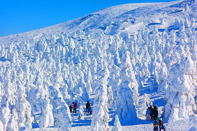 도호쿠 지역의 야마가타현은 겨울철에만 볼 수 있는 '수빙' 현상으로 유명합니다.