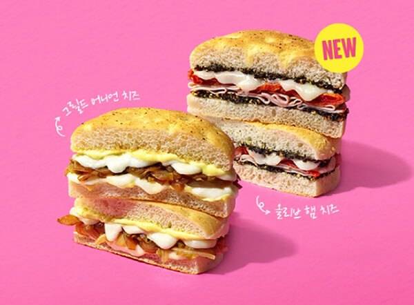 투썸플레이스는 식사빵으로 제격인 ‘포카치아 샌드위치’ 2종을 새롭게 출시했다. 이번에 선보이는 포카치아 샌드위치 2종은 카페 밀 트렌드 확산을 반영한 제품으로, 빵과 함께 햄, 치즈, 채소 등이 조화롭게 어우러져 맛과 영양을 동시에 만족시킨다. 감칠맛을 더하는 블랙 올리브와 캐슈넛, 치즈를 더한 올리브 페스토를 사용한 ‘올리브 햄 치즈 포카치아’와 노릇하게 캐러멜라이징한 그릴드 어니언에 모짜렐라 치즈, 몬테레이 잭 치즈를 더한 ‘그릴드 어니언 치즈 포카치아’의 2종이다. 가격은 5,900원이다.