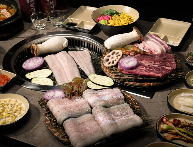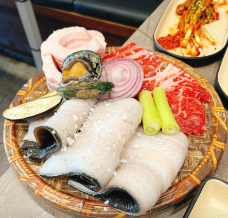 이곳의 가장 큰 매력은 민물장어, 소고기, 삼겹살, 전복까지 모든 메인 메뉴가 단돈 약 37,000원에 무한리필이라는 점이에요. 게다가 소주, 맥주 등 주류까지 무제한으로 제공돼 마음껏 먹고 마실 수 있습니다.셀프바도 운영돼 밑반찬, 소스, 야채를 자유롭게 가져다 먹을 수 있어 부족함 없이 푸짐하게 즐길 수 있어요.
