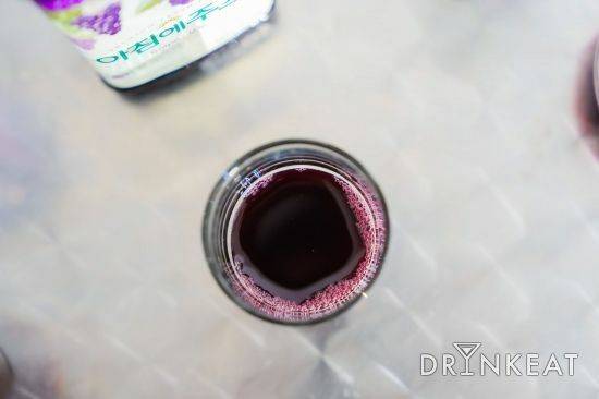 제품 함량을 살펴보면 비타민, 구연산, 스테이올베당체, 아연 등이 풍부하다. 음료를 따라보니 적포도주 색을 띤다. 묽어 보이지만, 맛은 절대 그렇지 않다는 거! 새콤달콤한 포도의 맛을 잘 구현한 주스라는 생각이다.