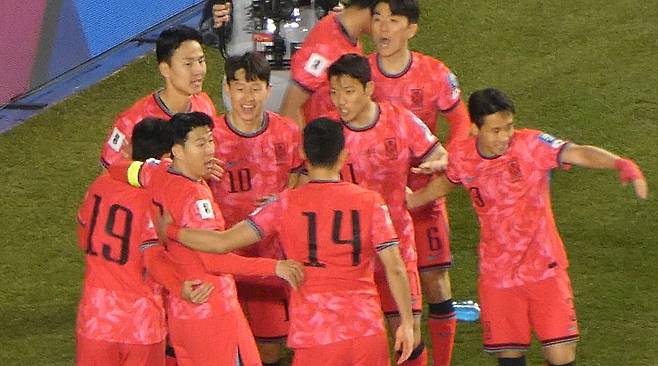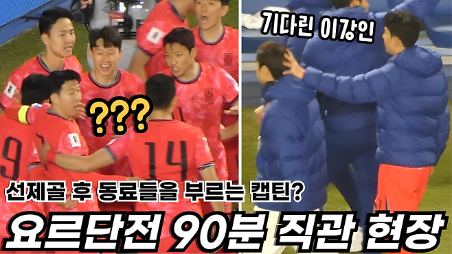 골 세레머니 중 손흥민은 대표팀 동료들을 불러 모아 집중할 것을 요구하며 강한 리더십을 보였습니다.