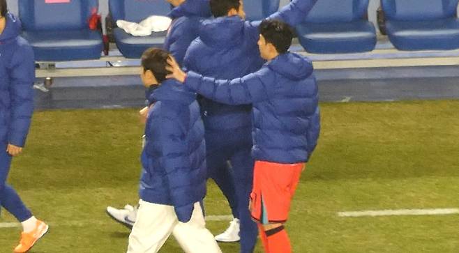 경기가 무승부로 끝난 후, 이강인은 라커룸 앞에서 손흥민과 대표팀을 기다리며 함께했습니다.
