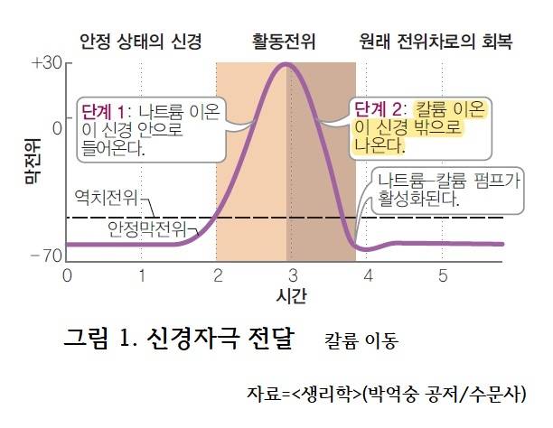 칼륨이 부족하면 신경, 근육이 ‘둔해져서’ 장애가 생길 수 있고, 과하면 ‘예민해져서’ 심장 수축 문제로 위험할 수 있다. 칼륨도 나트륨처럼 적절한 농도 유지가 중요하다.