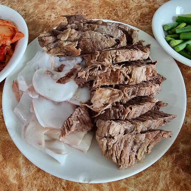 딱 2시간만 맛볼 수 있는 정겨운 손칼국수 혜화 '명륜손칼국수'. '하루 2시간'으로 영업시간도 짧지만 평일에만 먹을 수 있어 오픈런이 필수인 맛집이다. 양지를 삶아 육수를 내고 삶아낸 고기는 '수육'이 된다. 오랜 시간 푹 끓여 낸 고기 육수는 깊은 맛이 일품. 쫄깃우동일번가한 손칼국수 면발에 고기와 파 고명으로 맛을 더했다. 부드러운 수육과 잘 삶아낸 문어도 별미로 수육을 칼국수에 넣어서 먹으면 더욱 푸짐한 칼국수를 즐길 수 있다.