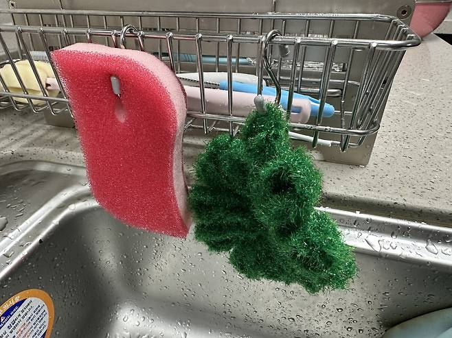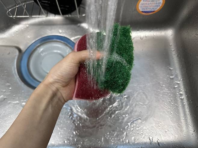 이렇게 헹구지 말고 그대로 건조해주시면 됩니다. 일주일에 한 번씩 수세미를 소독해 주시면 가족들의 건강이 한층 상승할 것입니다.