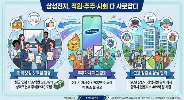 삼성전자는 2024년 11월 발표한 10조원 규모의 자사주 매입 계획 중 1차분인 3조원을 지난달 전량 소각한 바 있다. 이어 10일 발표한 16조원 규모 자사주 추가 소각 결정으로 주주환원 정책 강화에 대한 회사 측의 강력한 의지를 시장에 재확인시켰다.