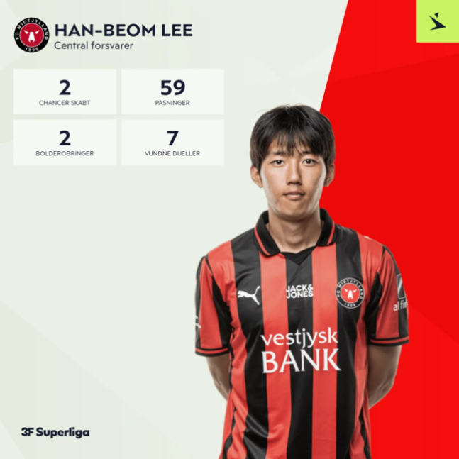미트윌란 선수 가운데 유일하게 이름을 올렸고 올 시즌 개인 첫 선정이었다. 사무국은 “59회의 패스 성공, 두 차례의 결정적 키패스, 7번의 경합 성공이 인상적이었다. 팀을 안정적으로 이끈 중심축이었다”며 선정 이유를 귀띔했다.