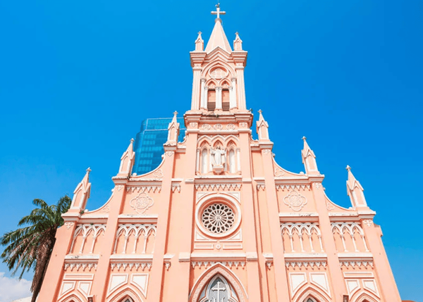 핑크성당은 다낭 시내 중심에 위치한 ‘다낭 대성당’의 별칭인데요. 특유의 파스텔 핑크빛 외벽과 고딕 양식의 디자인이 어우러져, 보기만 해도 기분이 좋아지는 여행지입니다. 여름의 햇살 아래 이 성당은 더욱 선명하게 빛나며 사진 명소로도 큰 사랑을 받고 있습니다.