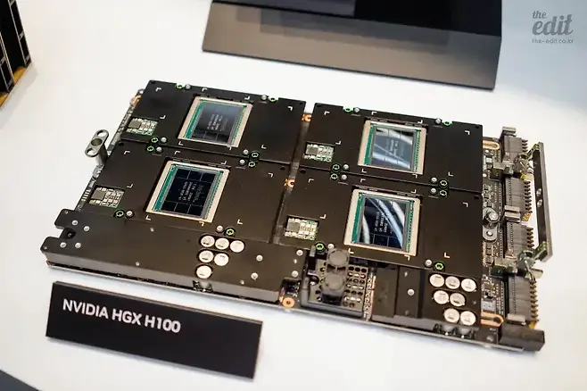 <지금 인공지능 시장의 중심이 되는 H100입니다. ChatGPT를 비롯해 우리가 경험하는 인공지능 서비스 뒤에는 대부분 이 컴퓨터가 있다고 봐도 지나치지 않아요>