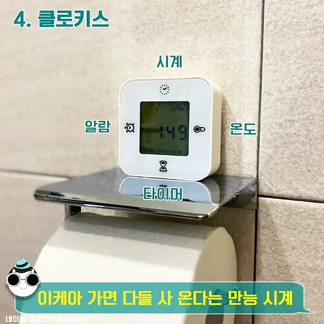 작고 네모난 탁상시계처럼 생겼지만 타이머, 알람, 날짜 및 시계, 온도계까지 총 4개의 기능을 가지고 있답니다.