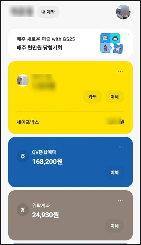 등록 완료하면 사진처럼 삼성증권이 카카오뱅크에 뜨게 되는데요.