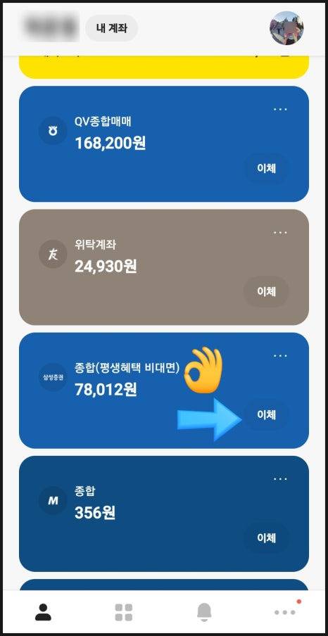 삼성증권에 cma 계좌가 있다면 이체하고자 하는 금액을 cma 통장으로 옮겨서 이체하는 방법도 있는데요.