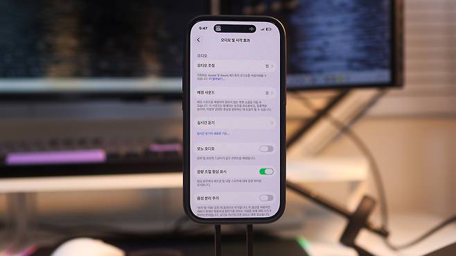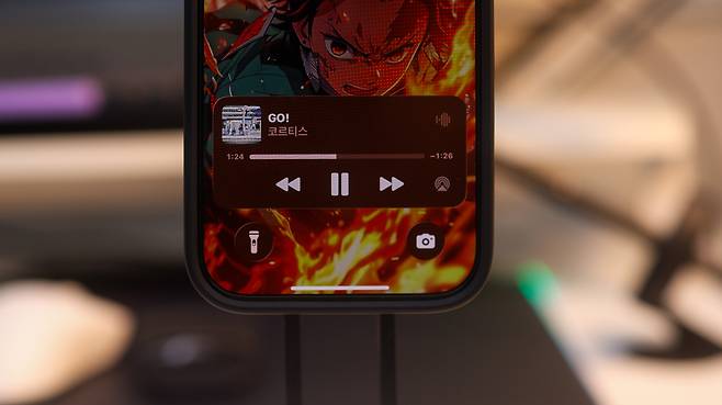 이 옵션을 켜기 전에도 물리 버튼을 누르면 화면 가장자리에 볼륨 게이지바가 잠깐 보입니다. 세밀하게 조절하는 건 가능했지만, 위치가 액정 끝에 붙어 있어서 시선이 가기도 애매하고 조금 불편할 수밖에 없었죠. 그래서 소리를 조절할 때마다 직관적으로 확인하기가 번거로웠습니다. 특히 잠금 화면에서 음악을 듣다 보면 볼륨을 조절할 때는 더 불편하게 느껴졌습니다.