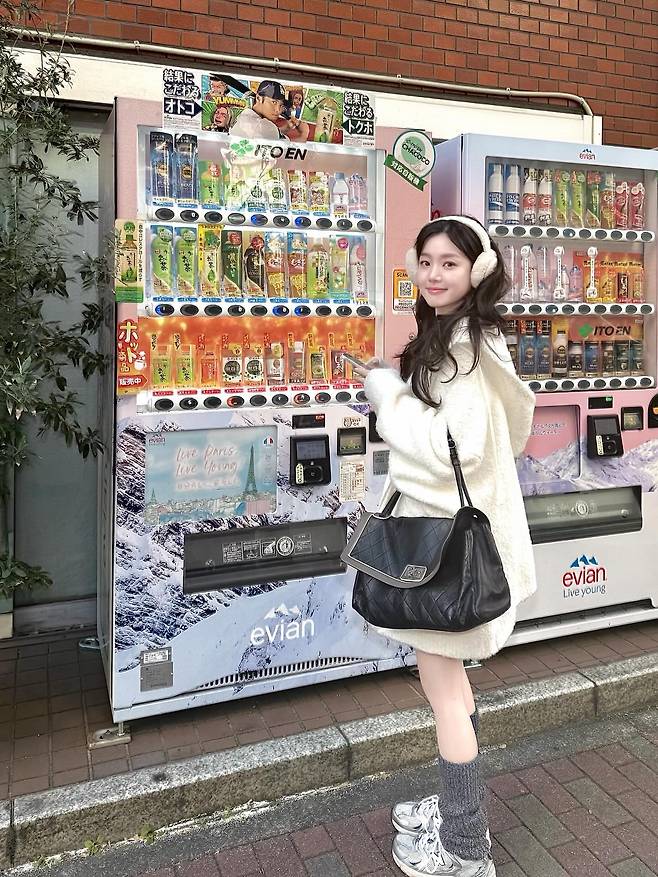 배우 이유비가 일본의 감성이 물씬 풍기는 거리, 에비앙 자판기 앞에서 찍은 사진을 공개하며 독보적인 요정 미모를 과시했어요.