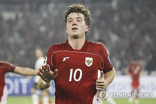 epa12157900 Ole Lennard Romenij of Indonesia celebrates scoring the 1-0 goal during the FIFA World Cup 2026 qualification match between Indonesia and China in Jakarta, Indonesia, 05 June 2025. EPA/BAGUS INDAHONO