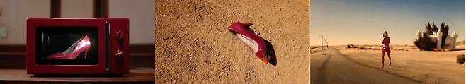 뮤비의 시그니처인 빨간 구두를 전자레인지에 넣고 폭발시키는 장면은 굉장히 상징적이라고 할 수 있는데요. 전화기였던 이 구두가 폭발하며 공간을 초토화시키지만 구두는 멀쩡히 살아남아 다시 예나의 발에 신겨집니다. 여기서 구두는 예나의 자아이자 정체성이라고 예측해 볼 수 있을 것 같은데요! 주변의 압박이나 상황에 굴하지 않고 다시금 제 갈 길을 가는 예나의 태도는, 소용돌이 끝에서도 결국 주체성을 잃지 않는 강인한 면모를 보여주고 있습니다.