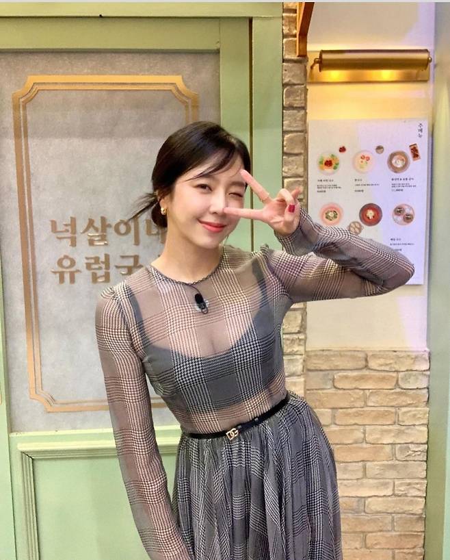 얇은 시스루 소재가 팔 라인을 자연스럽게 드러내며 그녀의 페미닌한 매력을 더욱 돋보였습니다.