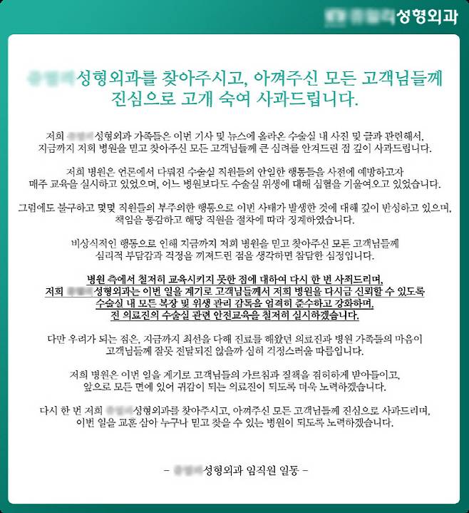 이후 이 병원 홈페이지는 폐쇄됐으며 이날 오전까지 접속되지 않는 상태다.