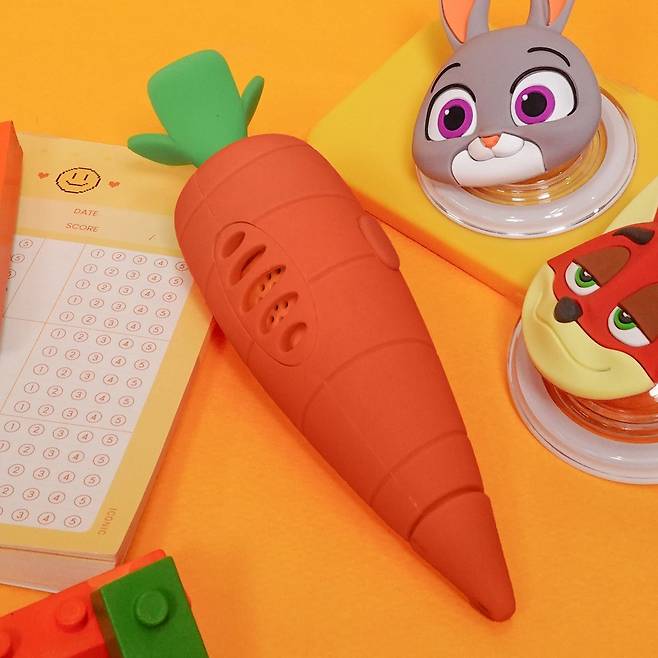 <주토피아> 팬들이 기대하던 그 굿즈, 당근 녹음기 펜이 등장했다. 당근 펜은 <주토피아> 속에서 닉과 주디를 이어주는 중요한 매개체 역할을 하는 물건이다. 디즈니랜드에 가야만 겨우 구할 수 있는 제품이었는데 공식 굿즈로 만들어졌다. 실리콘 소재로 제작해 말랑말랑한 촉감으로 녹음기는 충전해서 사용할 수 있다. 현재 스토리너스 공식 홈페이지(https://tinyurl.com/mv4maw5r)에서 2만 5,000원에 판매 중이다.
