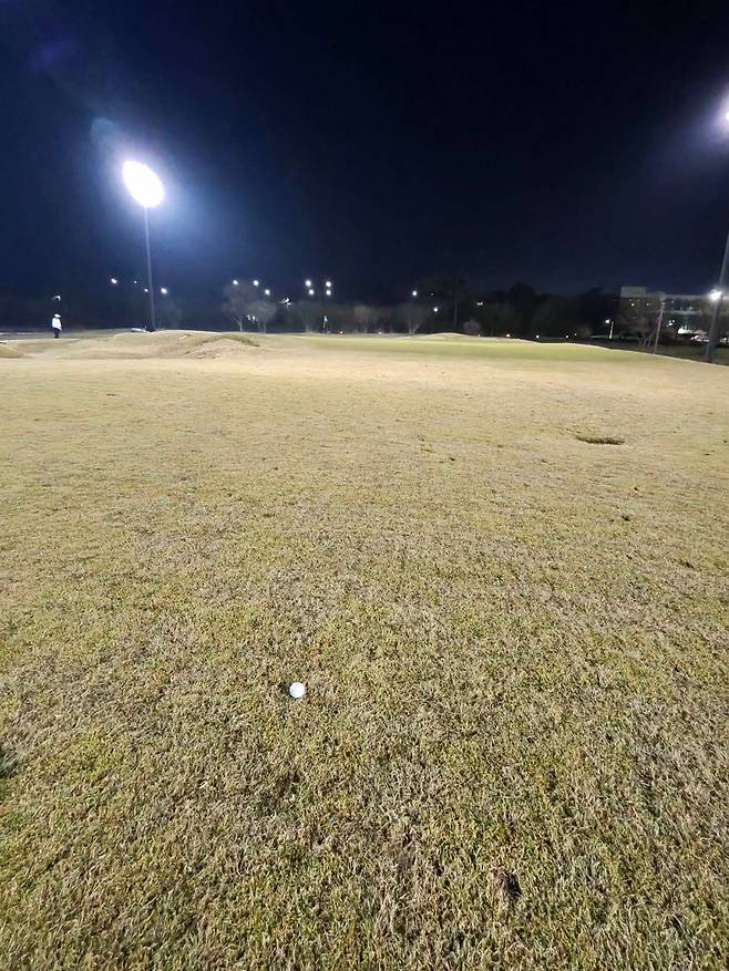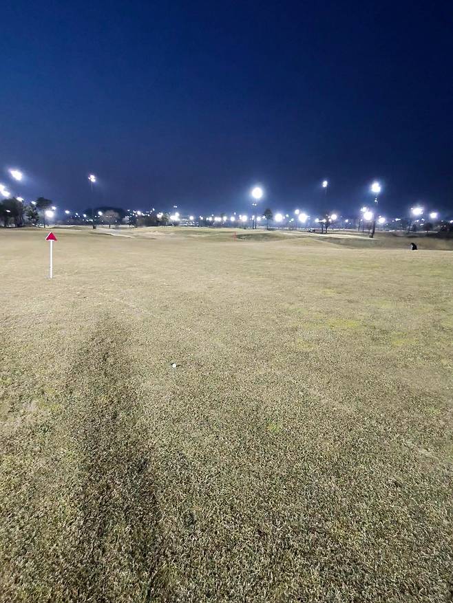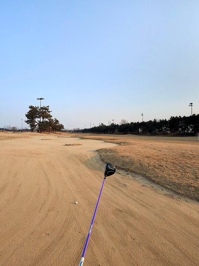 페어웨이 중앙인데도 약간 줄무늬 같은 결이 나있어서 공을 꺼내놓고 쳐야 했습니다.
