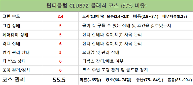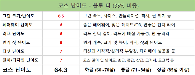 페어웨이 상태: 5점, 난이도: 6점
