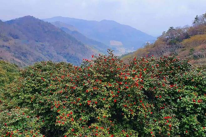 20만㎡에 이르는 광활한 동백숲은 산림유전자원보호림으로 지정·관리되고 있으며, 전망대에서는 동백숲 전체를 내려다볼 수 있습니다. 햇빛을 받아 반짝이는 동백나무잎과 붉게 핀 동백꽃이 어우러져 황홀한 장관을 만들어냅니다.