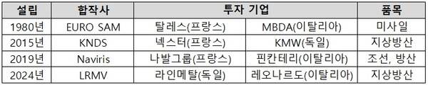 투자를 급격히 늘린 이유는 유럽, 중동 방산시장의 급격한 변화다. 특히 유럽에서는 글로벌 안보 수요 증가에 맞춰 프랑스, 독일, 이탈리아, 스페인 방산회사들의 JV 설립이 가속화되고 있다. JV를 통해 자국은 물론 유로존 수요를 채우는 형식이다.