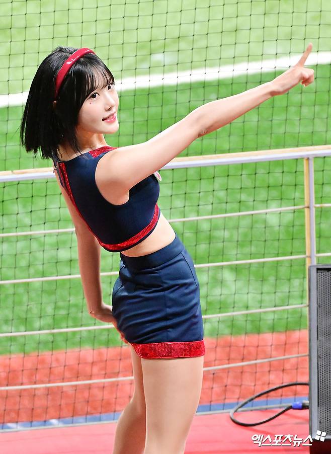 (엑스포츠뉴스 고척, 김한준 기자) 30일 오후 서울 구로구 고척스카이돔에서 열린 '2025 신한 SOL Bank KBO리그' 롯데 자이언츠와 키움 히어로즈의 경기, 최홍라 치어리더가 멋진 공연을 선보이고 있다.