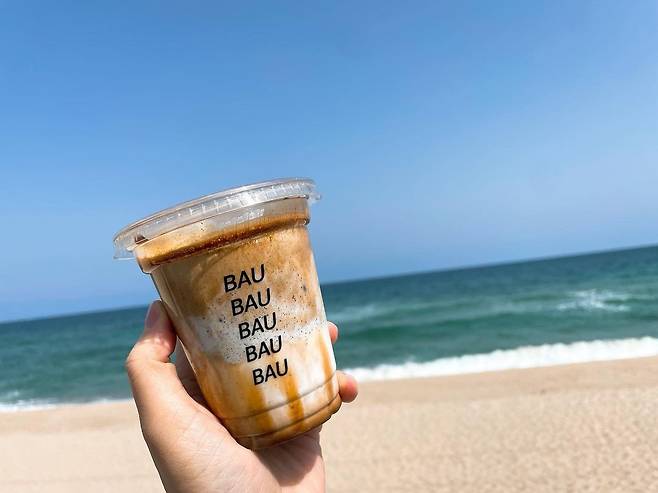 사천진해변이 한 눈에 펼쳐지는 오션뷰 카페 '바우카페'. 강원도 강릉에 커피하면 유명한 집이 많지만 그 중에서도 빼놓을 수 없는 커피가 바로 흑임자라떼다. 바우카페의 흑임자라떼는 진한 에스프레소와 진한 흑임자크림의 조합으로 에스프레소가 위에서 밑으로 가라앉기 때문에 나오자마자 먹는게 제일 맛있게 먹을 수 있다. 먹는 법도 있는데 일단 섞지 않고 잔을 돌려가며 조금씩 맛보고 점점 먹다보면 쓰다고 느껴지는데 그때 살살 돌려 섞어서 마시는 것. 흑임자의 고소함과 크림의 부드러움이 입안을 가득 채운다. 부드러우면서도 강렬한 맛은 밸런스가 잘 잡혀있어 맛의 균형을 이룬다.
