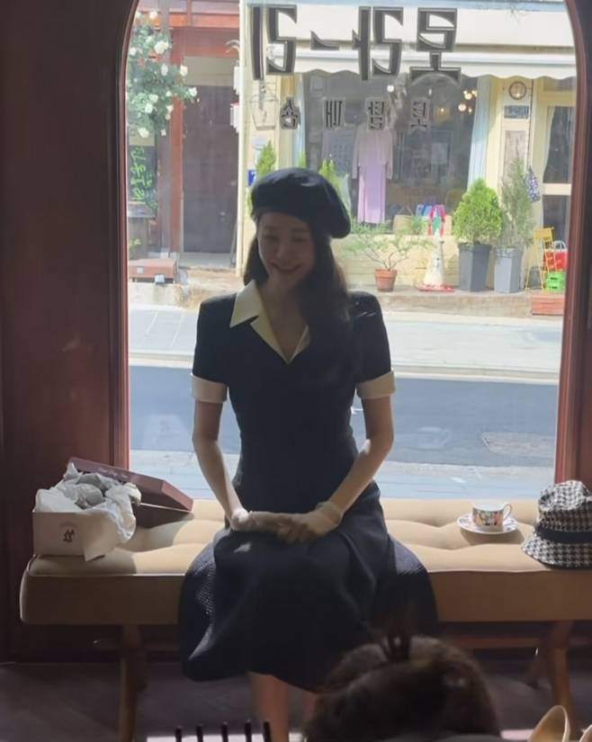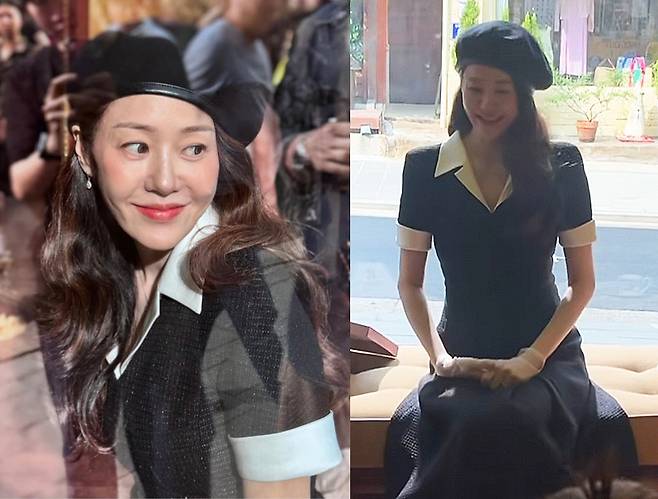 여기에 블랙 베레모를 얹은 스타일링으로 프렌치 시크의 정수를 보였습니다.