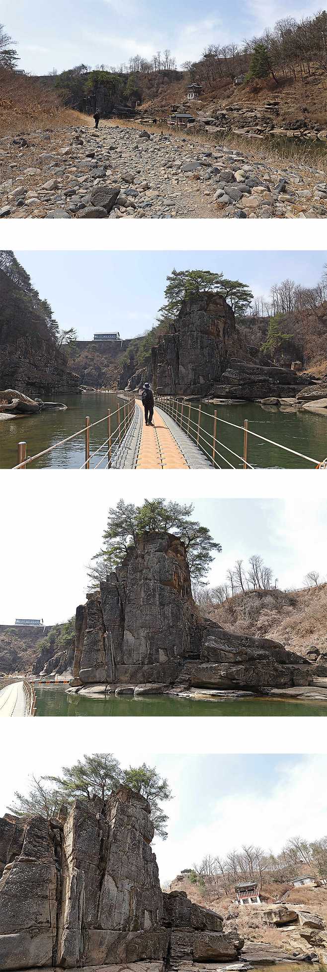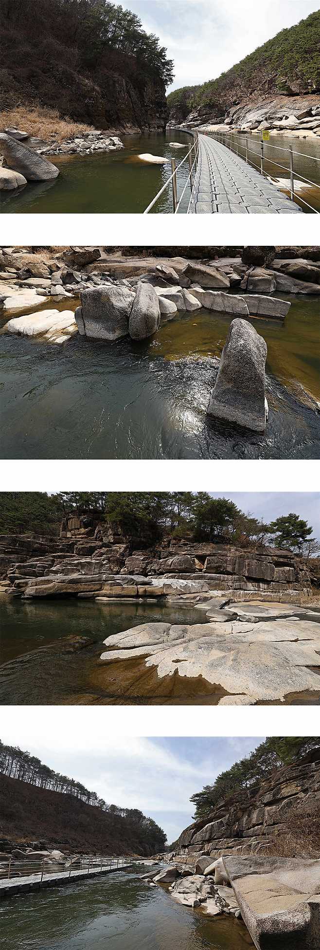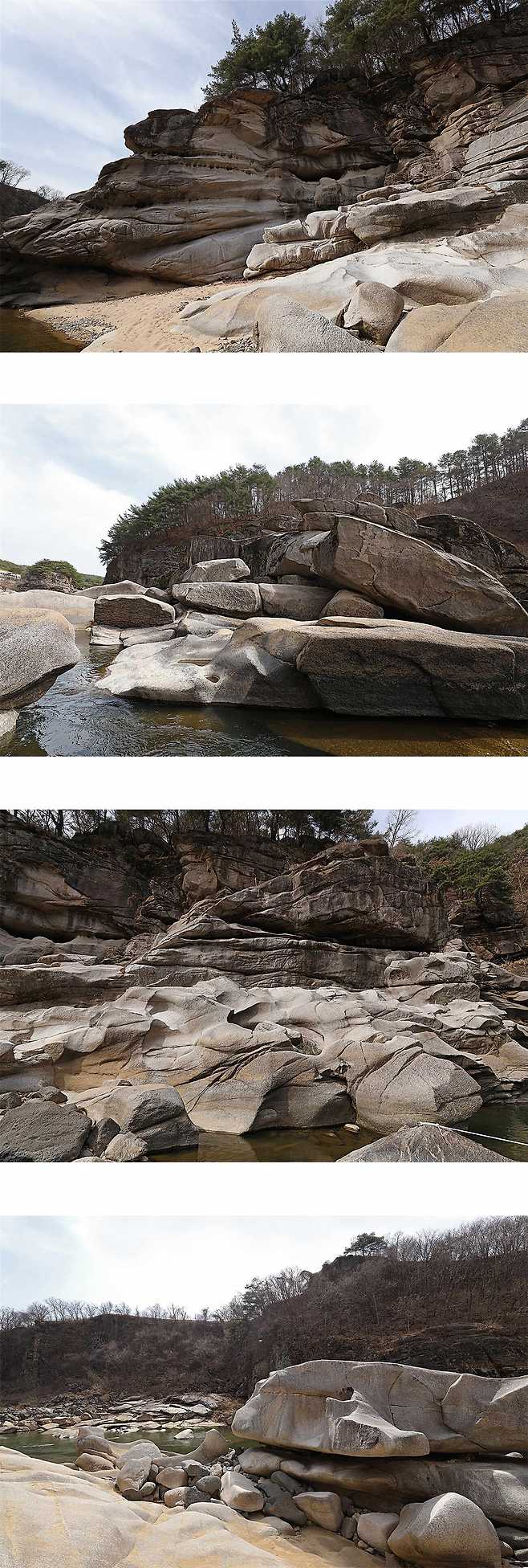 한탄강 협곡에는 수십 만 년 동안 강물에 의해 조각된 기묘한 형태의 화강암들이 펼쳐져 있다.