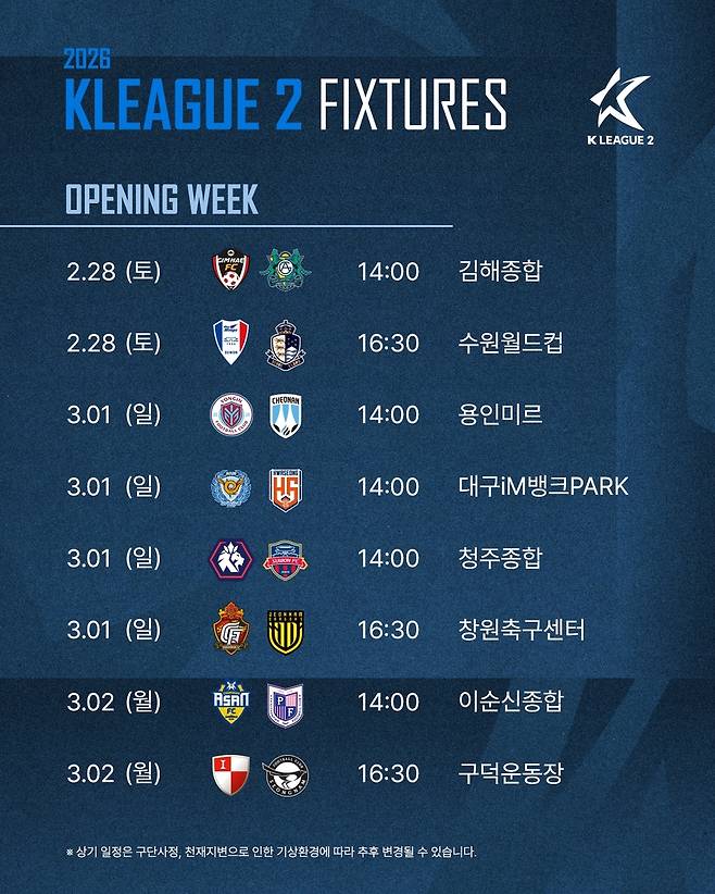 2026시즌 K리그2 정규리그 일정 확정