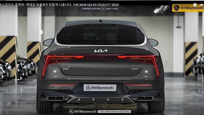 자동차 디자인 예상도를 전문적으로 다루는 유튜브 채널 ‘뉴욕맘모스’는 9일 K5 F/L의 신규 후면부 예상도를 공개했다. 최근 공개했던 전면부와 측면부에 이어, 최종적으로 후면부 예상도까지 나온 것이다.