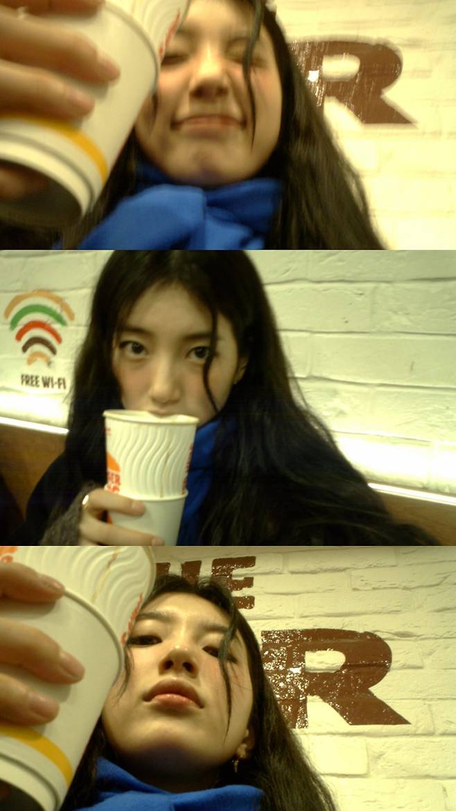 파란 머플러가 수지님의 미모를 더욱 돋보이게 해주죠 ?